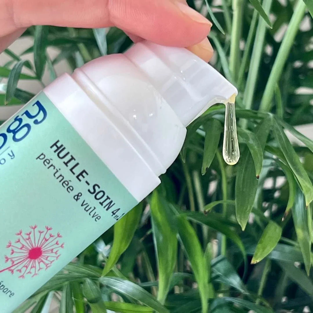 Huile de soin corps, périnée et visage, compatible 1ers jours de grossesse, allaitement et post-partum.